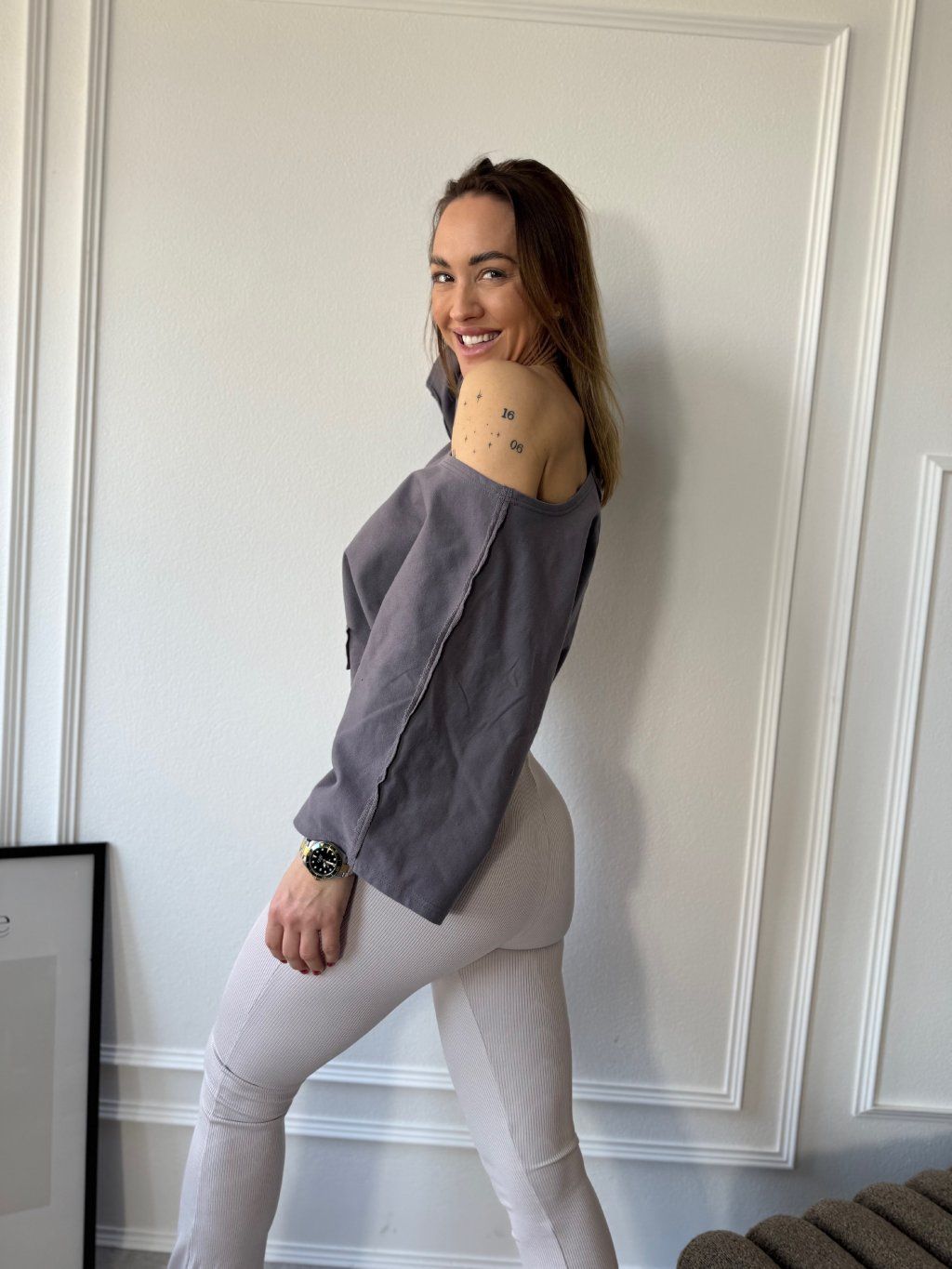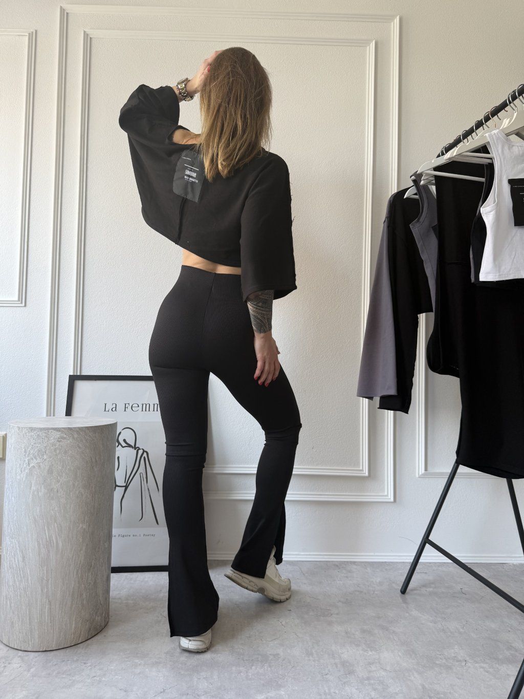 Tričko má oversize střih a jemně croptnutou délku, díky čemuž vytváří dokonalou siluetu. Skvěle se hodí zejména k legínám nebo džínám.