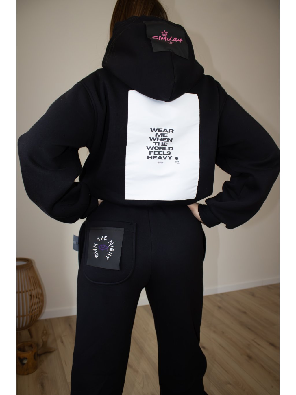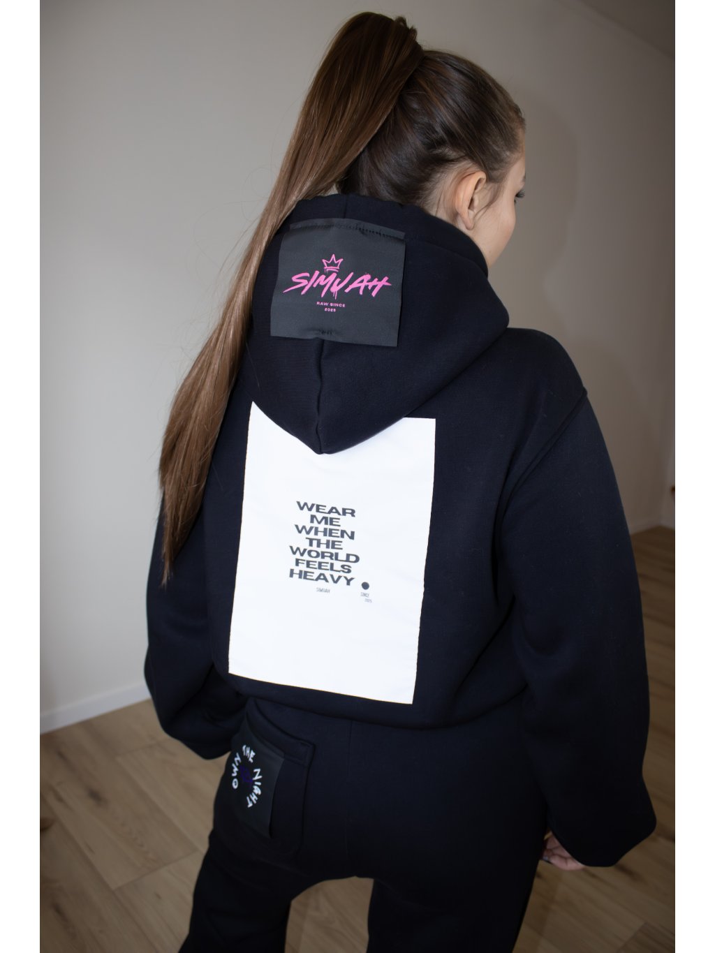 Tepláková souprava SIMUAH je naší první pýchou. Protože SIMUAH výrobky jsou dělané na Slovensku prošly mnoha úpravami abychom ji dostali do tohoto finále. Mikina má ideální velikost kapuce, na mikině se nachází kapsa ze předu. Tepláky mají dva přední váčky a 1 zadní.Hrubá mikina je ideální hlavně pro takové chladnější počasí a přechodné období.Střih je navržen tak aby sedl každé postavě. SIMUAH tepláková souprava ukrývá v sobě různé odkazy pro Vás, který ji nosí. Abychom nosili pocit jistoty a hlavně jedinečnosti. Protože je toto limitovaná kolkece a stejného druhu už nebude.Souprava je ideální pro běžné nošení, pro cestování ale také. na oddechové dny. Věříme, že to, co máš na sobě, tvoří základ tvé energie a že to nejdůležitější, co nosíš, je tvůj pocit. Materiál se nežmolkuje, nepouští barvu.