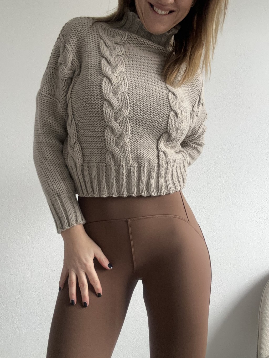 Modelka běžně nosí velikost M ai na sobě má oblečenou velikost M