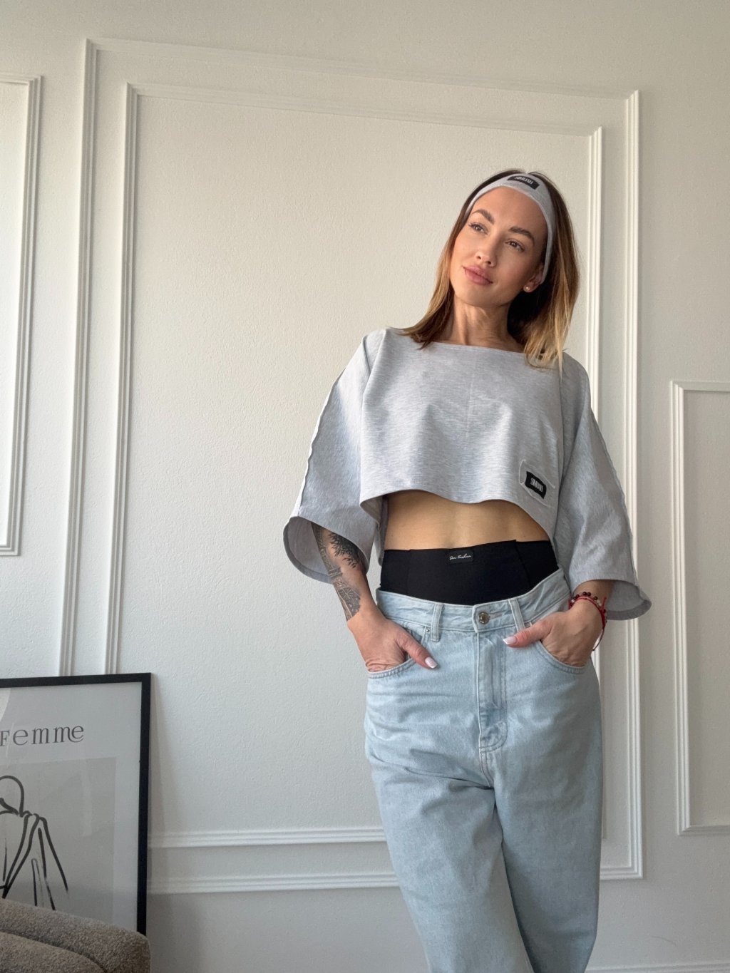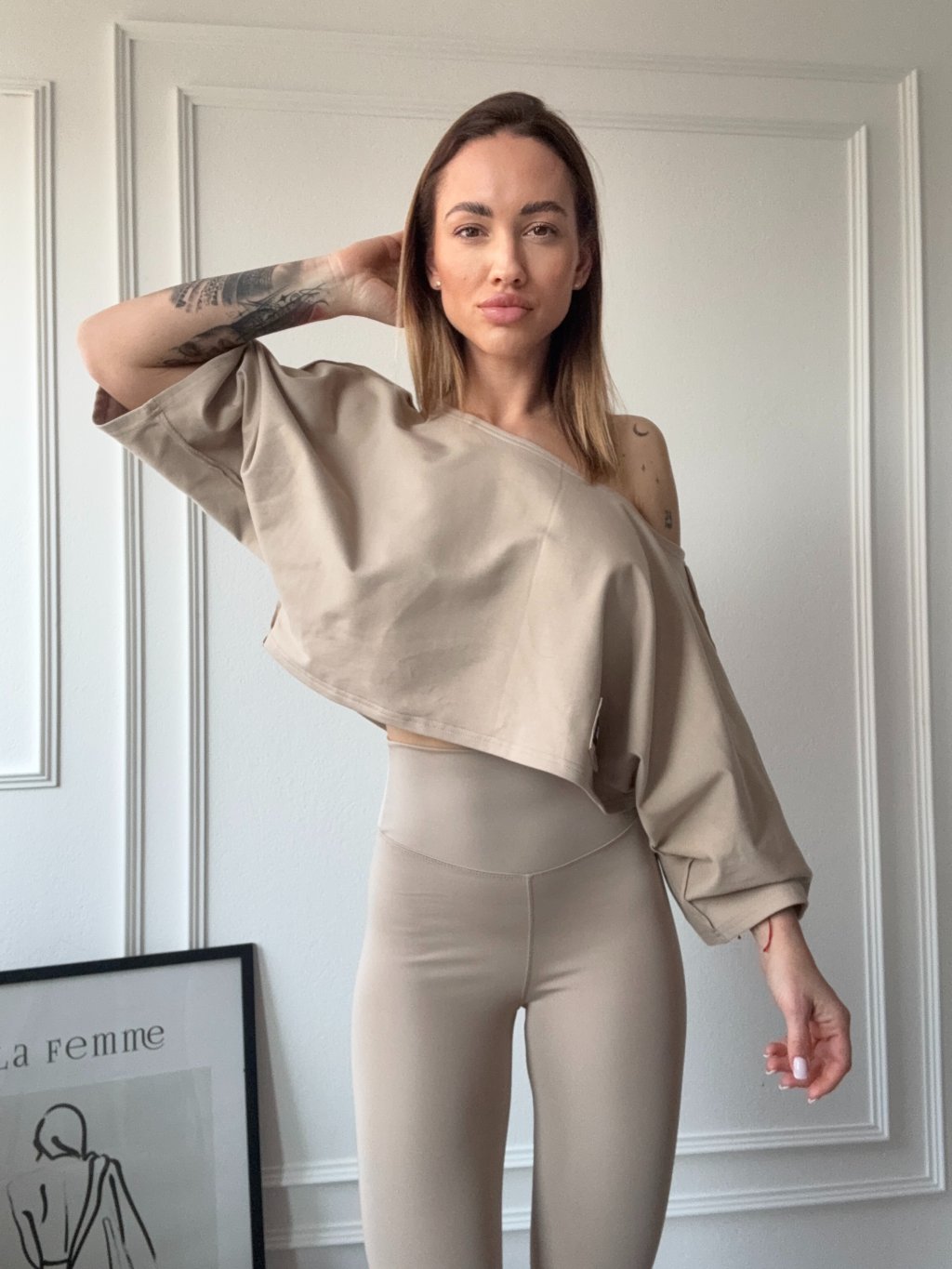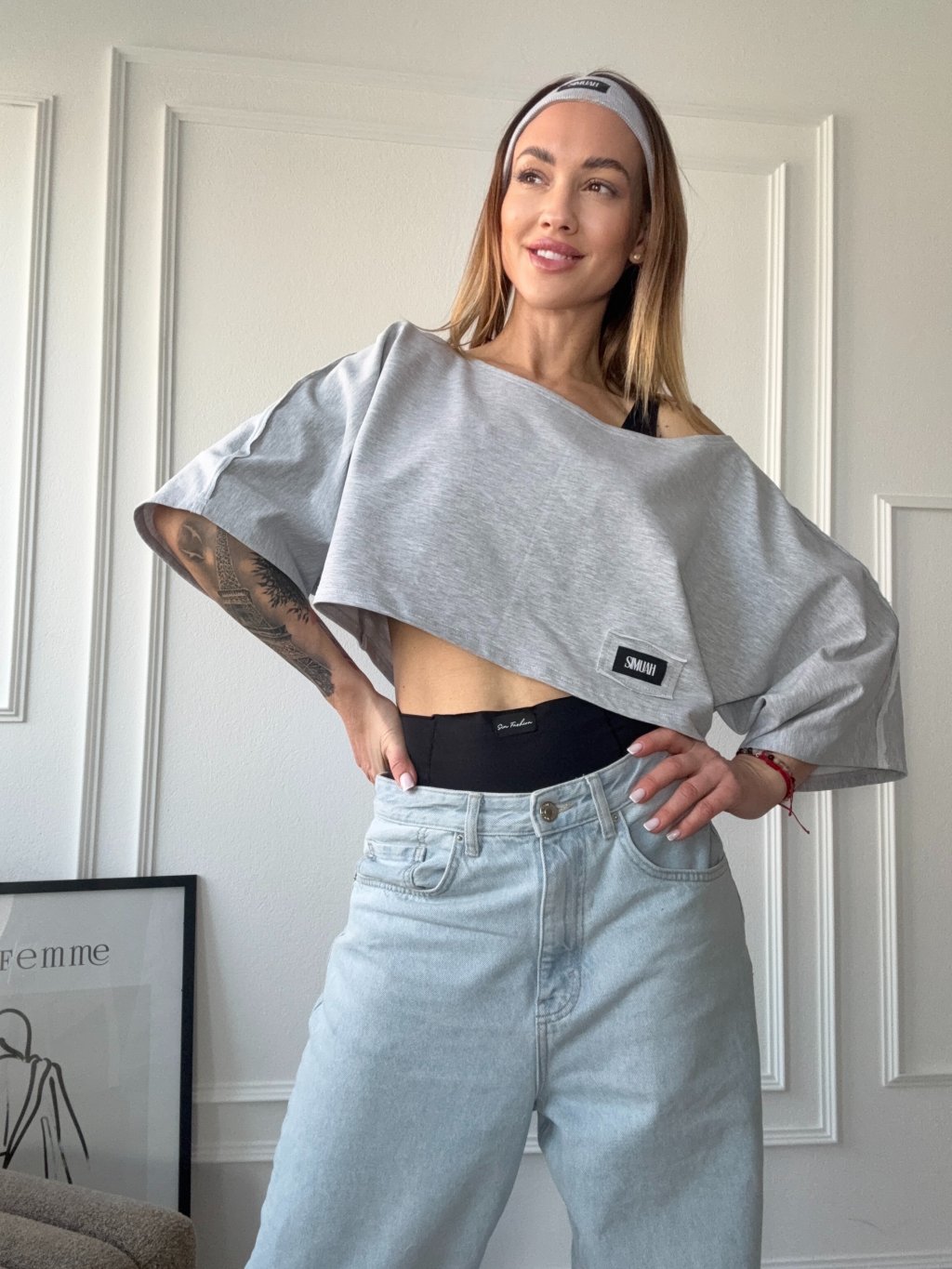 Tričko má oversize strih a jemne croptnutú dĺžku,vďaka čomu vytvára dokonalú siluetu. Skvele sa hodí najmä k legínam alebo džínsom.