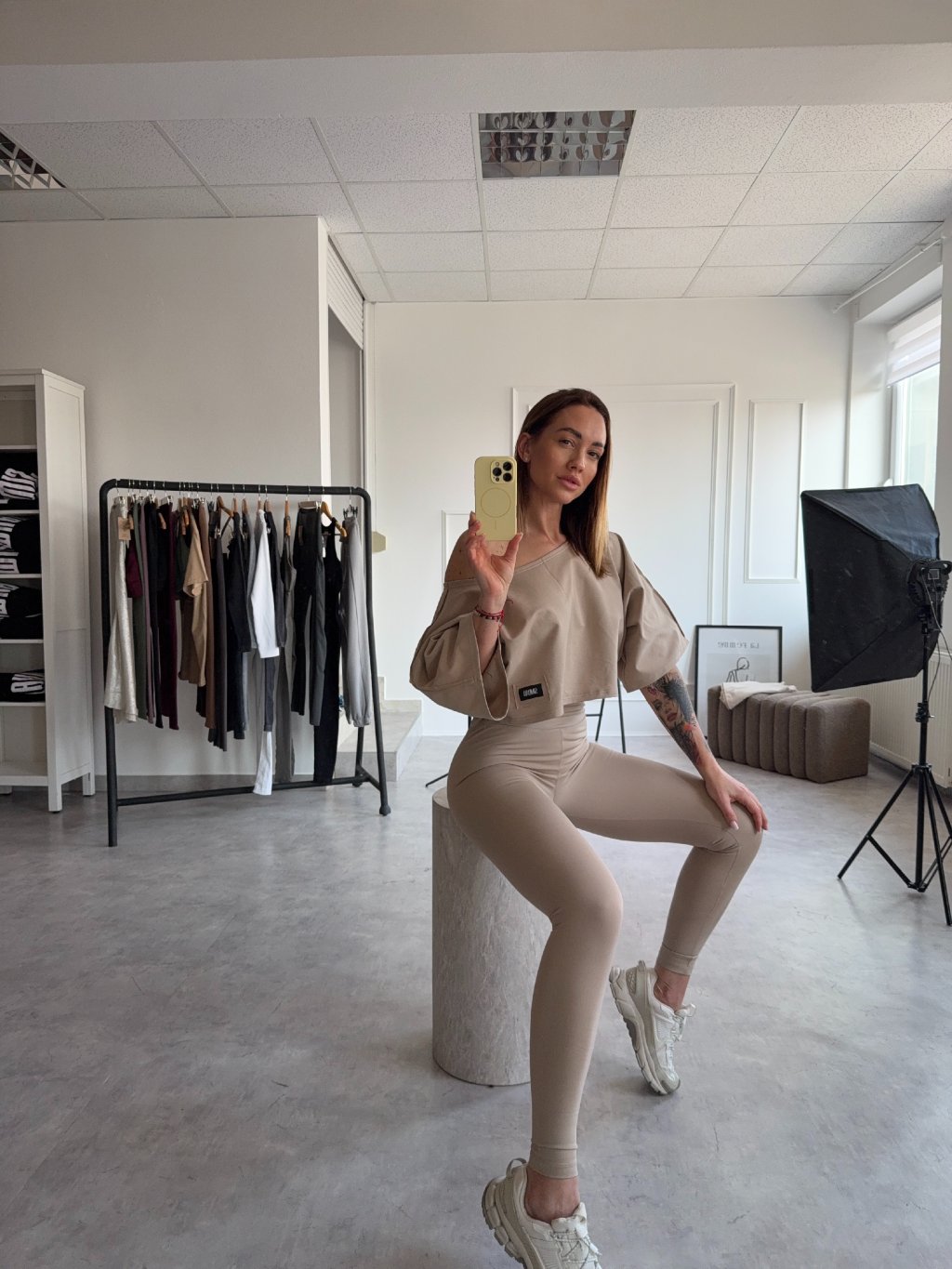 Modelka na fokte má výšku 172 cm a bežne nosí velkosť S/M